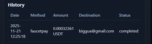 Для инициирования вывода пользователю необходимо нажать кнопку «Withdraw funds», после чего система перенаправит на страницу обработки транзакции. Майнинг выполняется локально и требует активной вкладки, однако возможен и фоновый режим.